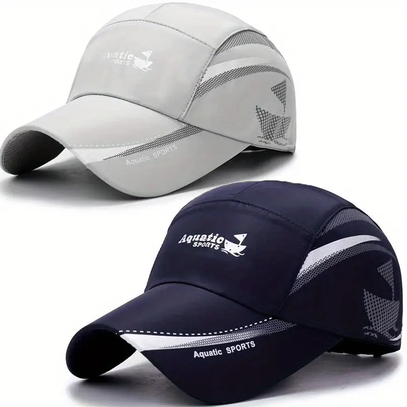 2pcs Quick-Dry Mesh Baseball Caps – Sailboat Print (Light Gray & Navy)